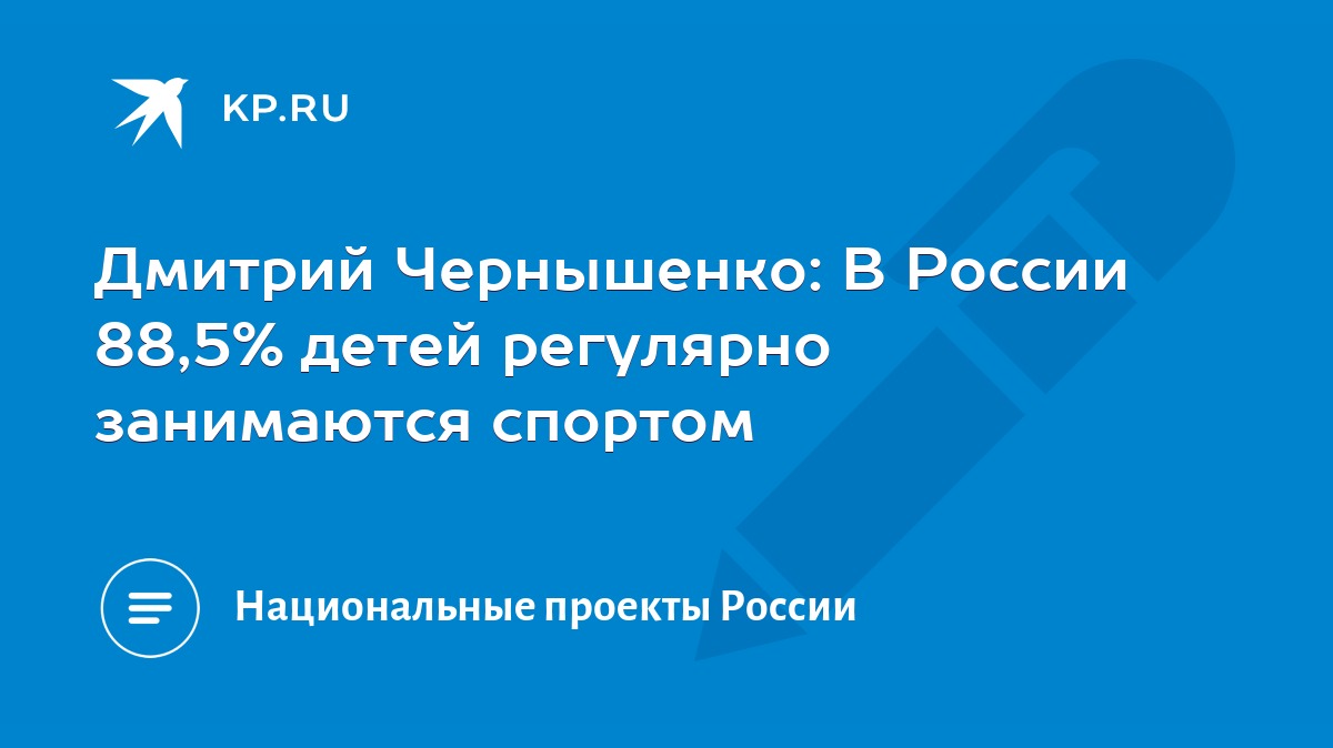 «Приоритетная задача при реализации концепции – привлекать к занятиям спортом как можно больше детей, начиная с самых ранних лет. На данный момент в России систематически занимаются физкультурой около 24,3 миллионов детей – это 88,5%. К 2030 году этот показатель должен превысить 90%. При этом профессионально занимаются в спортивных школах и центрах подготовки свыше 3,2 миллионов ребят. Среди регионов лидерами по количеству занимающихся являются Москва, Московская, Ростовская и Свердловская области, Краснодарский край, а также Республика Дагестан», - сообщил Дмитрий Чернышенко.