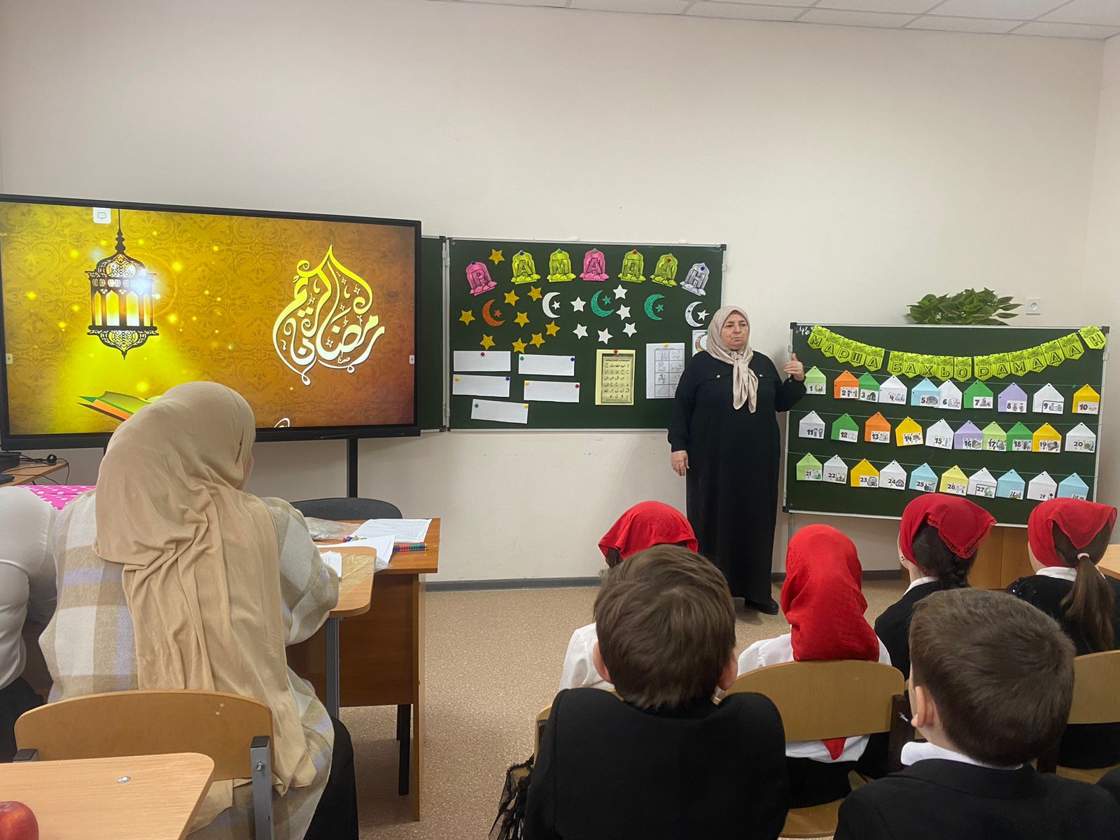 На мероприятии присутствовала первая смена обучающихся, присутствовали родители, учителя. Мероприятие провела заместитель директора по воспитательной работе – Асуева Куржан. Она рассказала об особенностях месяца Рамадан, отметила, что Рамадан – один из важнейших столпов ислама, месяц осмысленного выбора Прямого пути, который мы целиком посвящаем глубокому познанию Аллаха и Его Слов – Священного Корана. Священный месяц Рамадан – лучшее время духовного очищения, искупления грехов, совершенных в течение года. Дети читали наизусть суры из Корана, отвечали на вопросы. В конце мероприятия дети получили сладости.