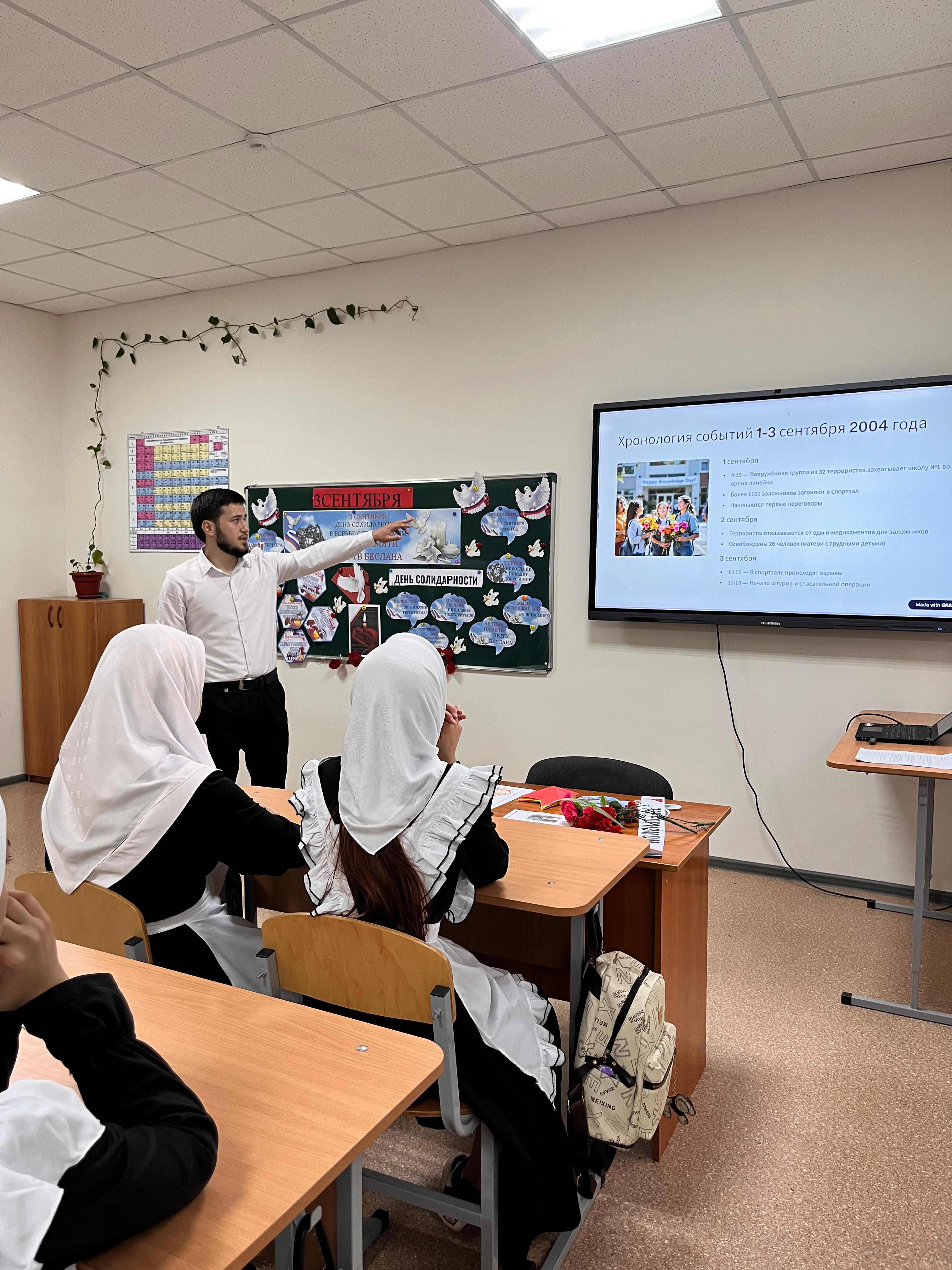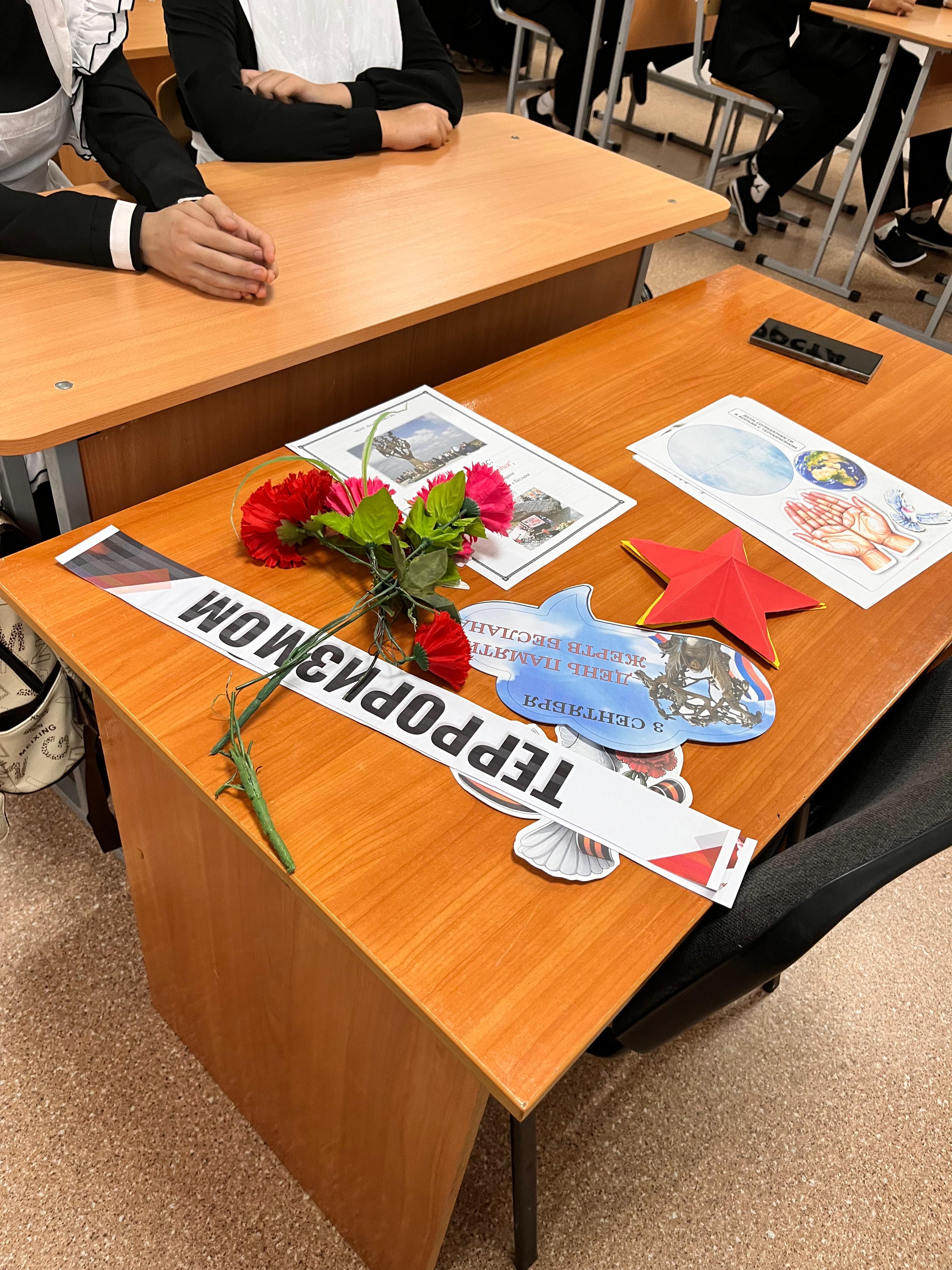03.09.2025Сегодня на календаре 3 сентября. Среди всех сентябрьских праздников - это трагическая дата. Это одна из памятных дат в России, которая носит название День солидарности в борьбе с терроризмом. Дата связана с трагическими событиями в городе Беслане 1-3 сентября 2004 года. Где в результате террористического акта в школе террористы трое суток удерживали людей, половина которых погибли. В Бельтинской школе 3 сентября были проведены классные часы, презентации. Советник директора Юсуев Т.Р. вместе с зам. директором по ВР Асуевой К.А. провели общешкольное мероприятие, где присутствовал директор школы – Абдулкадыров В.Х., все учителя и обучающиеся старших классов. Цель проведения мероприятий – акцентировать внимание учащихся на необходимости проявления бдительности с целью профилактики совершения террористических актов; содействовать формированию толерантности и профилактики межнациональной розни и нетерпимости; содействовать формированию чувства милосердия к жертвам терактов (на примере Беслана). Против терроризма сегодня весь мир, люди всех национальностей, стран и контингентов.
